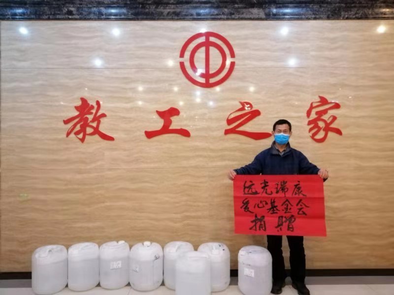 2月6日,争取物资。王国念老师向远光瑞康爱心基金会争取到400斤医用酒精,该紧缺防疫物资定向捐赠给地大。