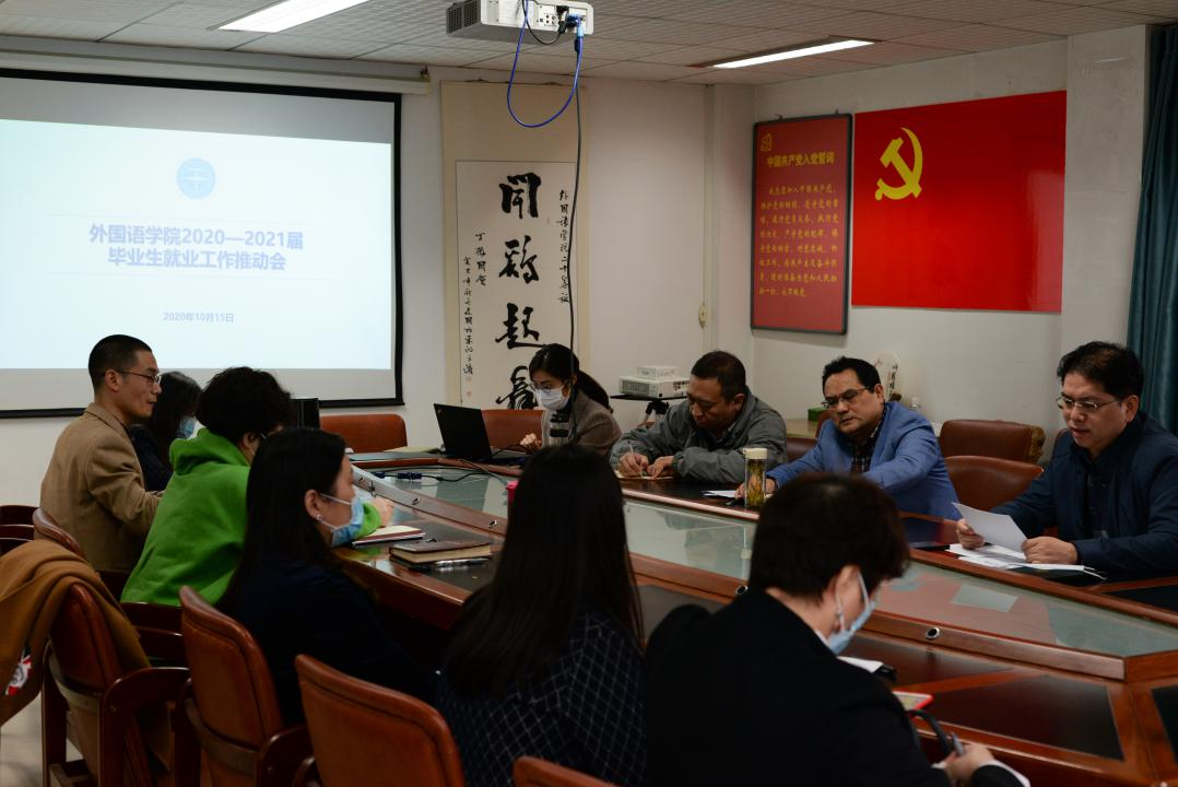 10月15日下午,自慰视频 在北一楼会议室召开2020-2021届毕业生就业工作推进会,学院党政联席会成员、各三级单位主要负责人、硕士毕业生导师代表、本科毕业班班主任、辅导员参与会议。学院党委副书记胡文勤主持会议。