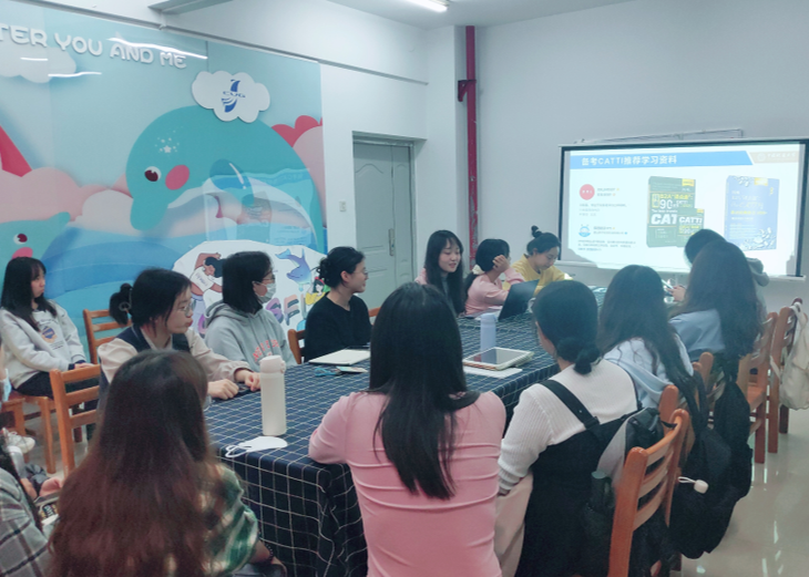 在讨论环节,朱彦霏同学针对大家提出的问题,如:“如何有效获取考试信息?”、“如何把握备考时间?”、“翻译过后如何自我批改和复盘?” 等同大家展开了积极的讨论。其中一位同学向在座的参会人员抛出了一个有趣的思考:奶茶中的脆波波的‘脆’字如何翻译更贴切?同学们踊跃发言,热烈探讨,将论坛的气氛推向高潮。