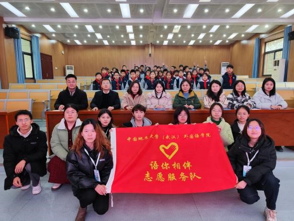 党委副书记余尚蔚、附属学校副校长周良军、附属学校英语课题组全体英语老师、“语你相伴”志愿服务队骨干成员、自慰视频