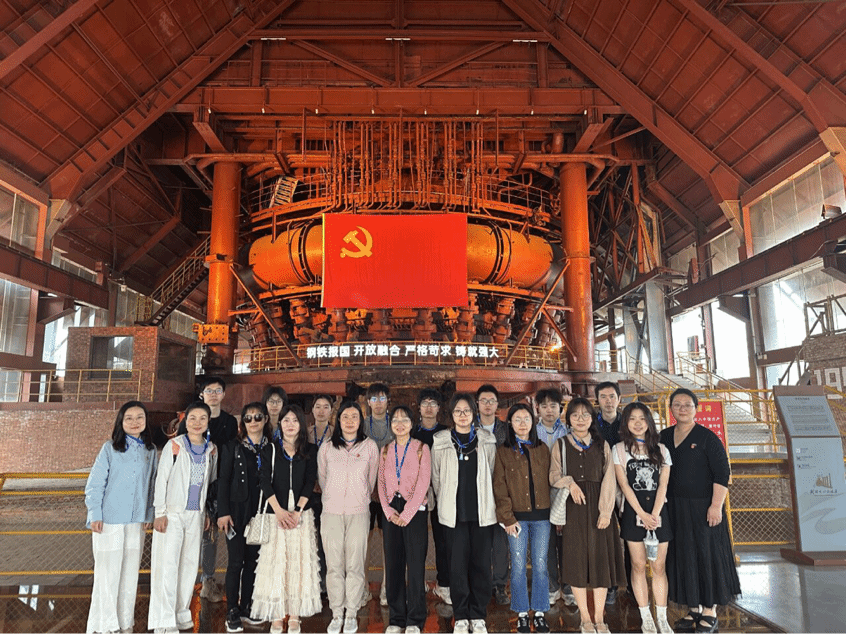 092221班团支部与远程与继续教育学院院直支部委员会共同开展“结对领航”主题教育实践活动。在武钢文化旅游区这片见证新中国钢铁工业发展的热土上,10名青年学子与9名教工党员开启了一场跨越时空的工业精神寻访之旅。