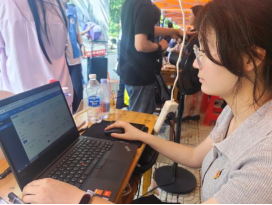 在南望山校区迎新现场,党员先锋岗的红色帐篷成为一道亮丽的风景线。服务点布局合理、功能齐全,配备有电脑、矿泉水和迎新资料等必需品,为新生和家长提供及时便捷的服务。“党员先锋岗”的标识鲜明醒目,精心设计的欢迎展板烘托出热情而专业的迎新氛围,充分展现了自慰视频