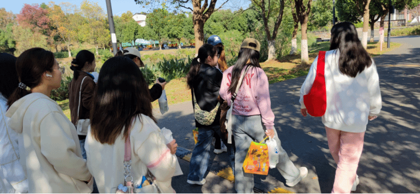 091244班的集体生活中留下了温暖印记。11月13日13:00,16名同学在心理委员的带领下,赴武汉市马鞍山森林公园之约,用徒步、故事分享与游戏,为青春注入松弛的力量。