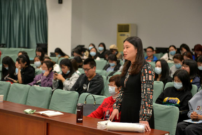 在提问环节,参会师生踊跃发问,与徐教授积极交流互动。徐教授就国内外综述顺序、时政研究的相关研究方法、国家社科基金项目中的路径研究等方面进一步分享了自己独到的见解,并提出了中肯的建议。