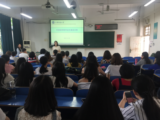 2018届毕业研究生就业动员大会在北综楼208举行,院党委副书记蒋怀柳、院研究生教育中心主任王伟,2017届毕业生代表以及全体2015级学硕、2016级学硕和翻硕班同学参加了此次大会。 蒋怀柳为2018届毕业生做了《英语专业就业形势分析报告》,从近十年自慰视频