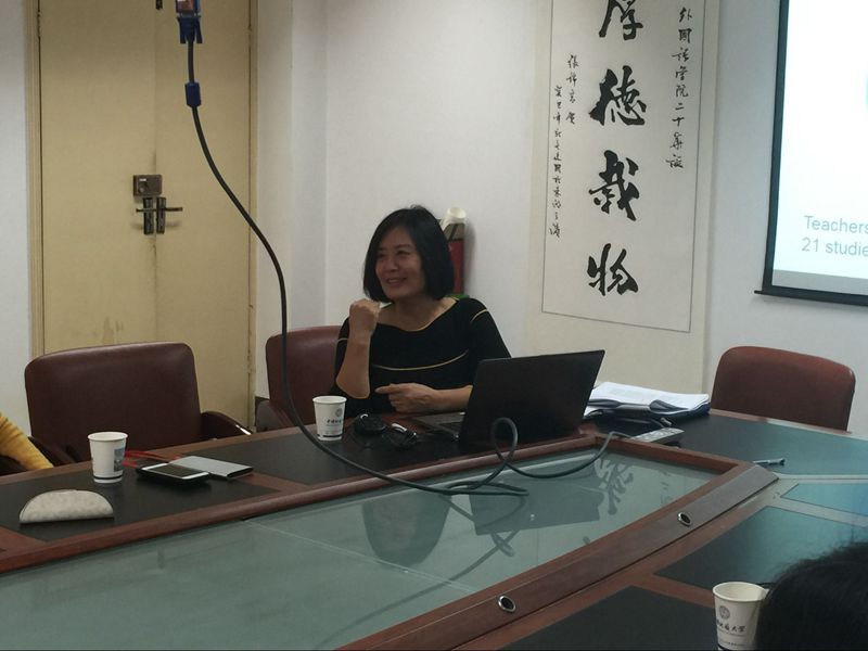 张晓兰博士的讲座非常地生动风趣。张晓兰博士在讲座中常常借助课堂中有趣的实例加以说明“纠错性反馈”这一现象,并和在座的教师们,共同就“纠错性反馈”这一理念在未来教学中的运用展开了热烈的讨论。此次讲座给自慰视频