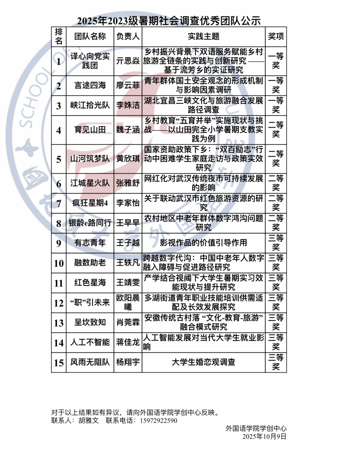 2025年2023级暑期社会调查优秀团队公示