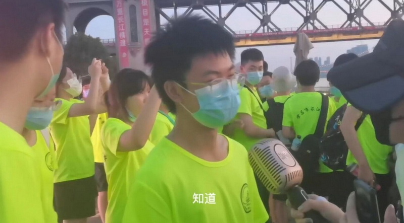 团队成员在长江大桥进行街头采访