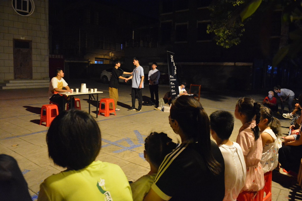 “长江歌者”社会实践团队在社区进行话剧演出