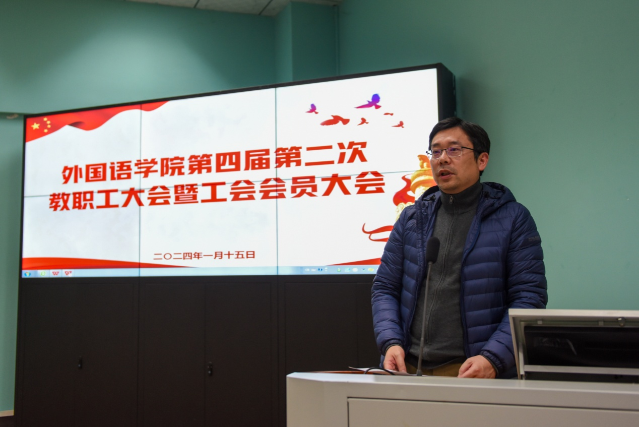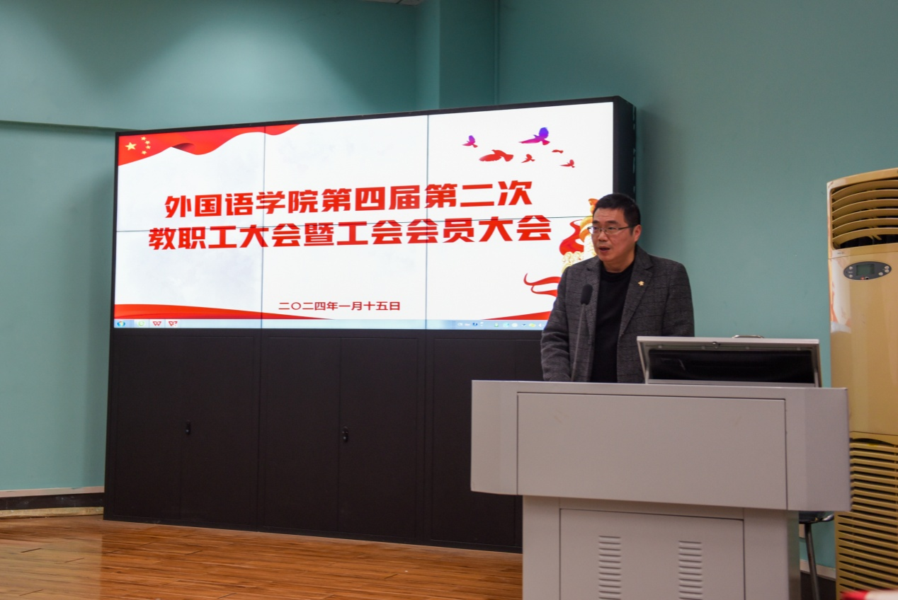 第四届第二次教职工大会暨工会会员大会在北一楼学术报告厅隆重召开。学校党委副书记王甫出席大会并讲话。大会由院党委书记刘世勇主持。