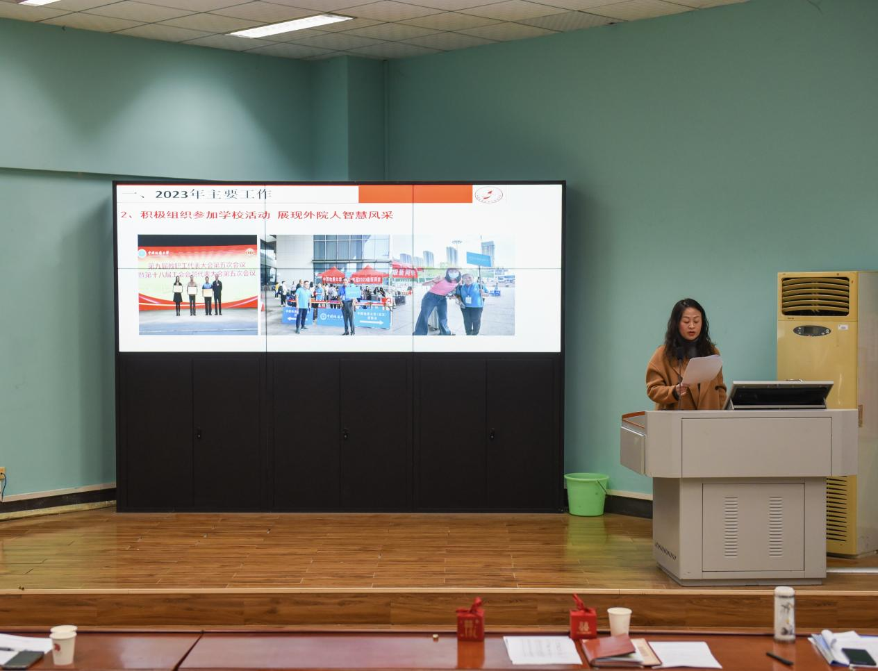 院分工会主席张云霞作学院2023年分工会工作报告和财务工作报告。她围绕学院工会自身建设、活动开展、关心教职工生活和维护教职工权益等方面对分工会过去一年所做的工作和取得的成绩进行了全面回顾。会议通过举手表决的方式通过了学院2023年分工会工作报告和财务工作报告。