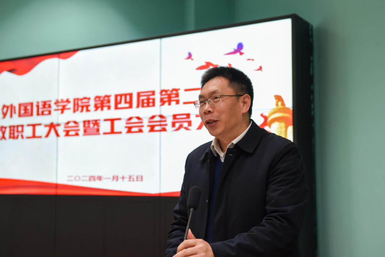校党委副书记王甫讲话,对领导班子勇于担当作为、聚焦立德树人主责主业、努力推动高质量发展和取得的工作成绩给予肯定。他就下一阶段工作提出三点要求:一是加强理论学习,不断提高人民教师的责任感和使命感,通过抓支部、抓活动、抓好政治巡察整改,把大家凝聚在一起共谋发展,要守牢意识形态红线、安全底线;二是以高质量为主题,不断提高人才培养质量和贡献力,要抓教学团队、导学团队,做好未来教学成果奖的谋划,鼓励教师通过参加教学比赛提升教学能力,以教师为主体、全员参与,打造“中西文化节”活动品牌;三是有组织地谋发展,做好科研、社会服务及融入学校国际合作战略等方面的增量。