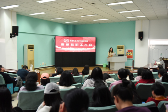 在北一楼一层报告厅召开新学期工作布置会,传达2024年学校工作会议精神,部署2024年学院工作,推荐选举学校“两代会”代表。自慰视频