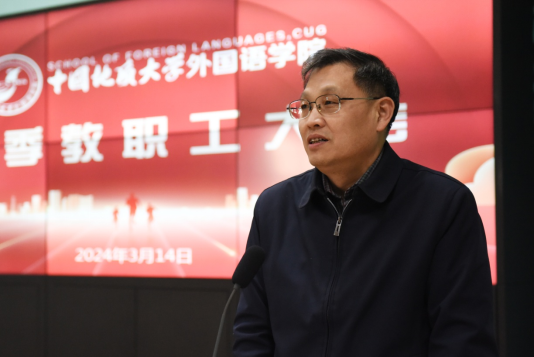 院长、党委副书记张峻峰结合实际分析了当前学院存在的主要问题,并安排部署了下一步工作。他指出,2024年学院将以习近平新时代中国特色社会主义思想为指导,学习宣传贯彻党的二十大和二中全会精神、学校十三次党代会精神,扎实开展好政治巡察整改,持续加强党建引领作用,以提升教育质量为核心,以创新教育模式为动力,全面推进各项工作。通过加强师资队伍建设、提升科研水平、创新教学模式、丰富课程设置、积极开展国际交流与合作、拓展学生的国际视野等途径,更好地适应新时代对外语人才培养的需求。高度聚焦学校、学院“十四五”发展规划目标和学科建设,持续提高育人水平,深入推进学院高质量发展。