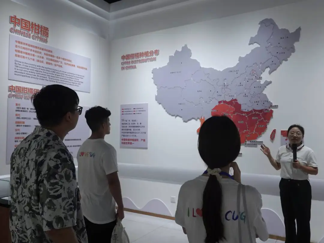 在参观了现代化的生产设备和忙碌而有序的生产线,看到了柑橘如何从枝头走向舌尖后,实践团来到屈姑科普体验馆,品尝到了不一样的产品脐橙酒、脐橙茶等;感受到了一辈又一辈人为了发扬秭归脐橙而付出的卓越奋斗。
