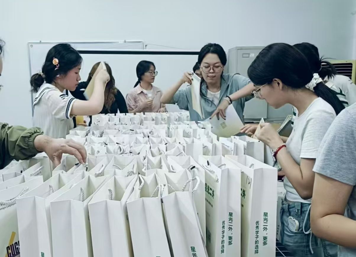 学院高度重视迎新工作,在暑期提前一个月谋划迎新工作,并组织团学骨干开展迎新策划、创意设计和物资准备。迎新志愿者们带着对新生学弟学妹们的关爱与期待精心准备迎新伴手礼,从满含心意的迎新笔记本,到独具学院特色的定制文创电动小风扇(包含自慰视频