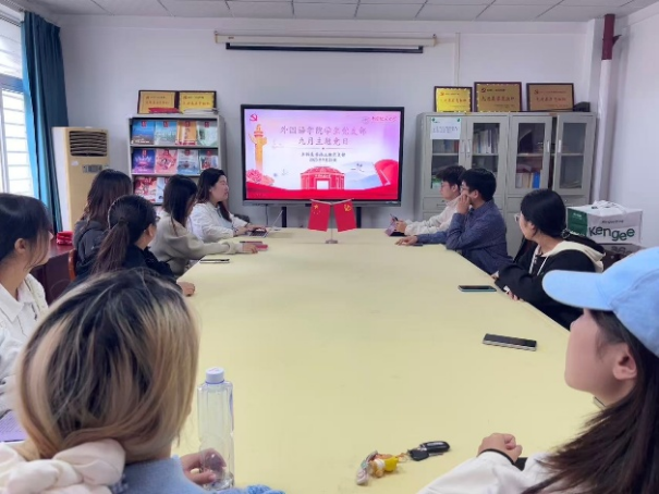本科生英语三班党支部围绕“弘扬伟大抗战精神 奋力推进强国建设”主题开展党日活动,由支部书记郑佳宜主持、副书记冉朝晖组织,院团委书记邹蔚鹤、辅导员黎颖及支部全体党员、积极分子共同参与。此次活动聚焦“青年党员使命担当”与“强国建设实践路径”,以服务教育强国建设、培养堪当民族复兴大任的时代新人为目标,常态化开展理论学习、实践活动与思想交流。