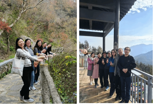 老师们结伴徒步,远眺群山秋色,不时驻足欣赏、拍摄记录,交流工作与生活近况,在轻松愉悦的氛围下进一步促进了彼此之间的了解与情谊。