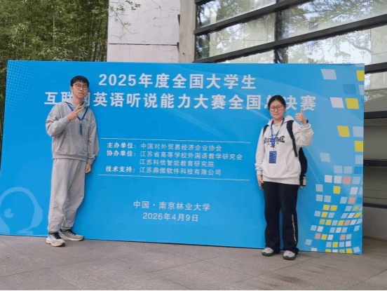 2025级大学英语ESS实验班郭胤九同学(资源学院)与李美萱同学(海洋学院)凭借扎实的英语功底、良好的临场应变能力,在决赛中沉着应试、从容发挥,最终荣获本科组全国三等奖,为学校赢得了荣誉。