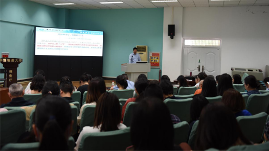 党委在北一楼报告厅组织全体教职工党员和学生党支部书记集体学习习近平新时代中国特色社会主义思想。马克思主义学院副院长陈军教授作《习近平生态文明思想的深刻内涵与实践遵循》的报告,外国语学院党委书记刘世勇领学习近平总书记在中共中央政治局第五次集体学习时的重要讲话精神,传达教育部有关文件精神。