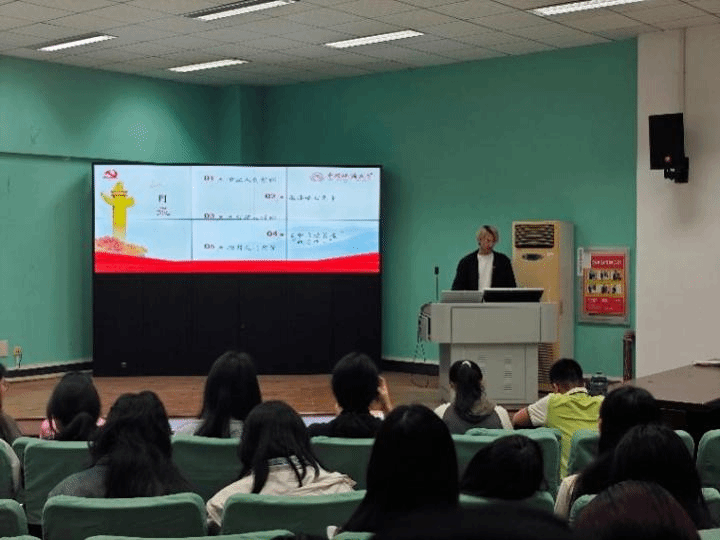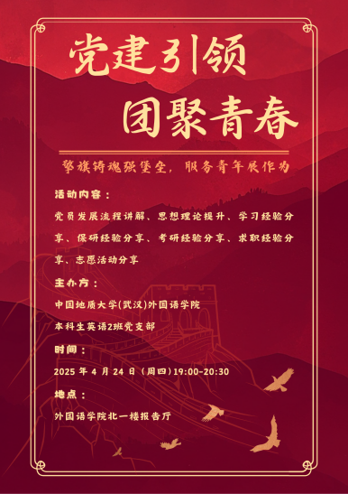 本科生英语2班党支部于北一楼报告厅举办 “擎旗铸魂强堡垒,服务青年展作为——党建引领・团聚青春”主题联动大会。本次活动以强化党建带动团建作用、服务青年成长为核心,通过理论学习、经验分享等形式,凝聚青年力量,筑牢思想根基。本2支部党员代表及2024级全体本科生共同参与。